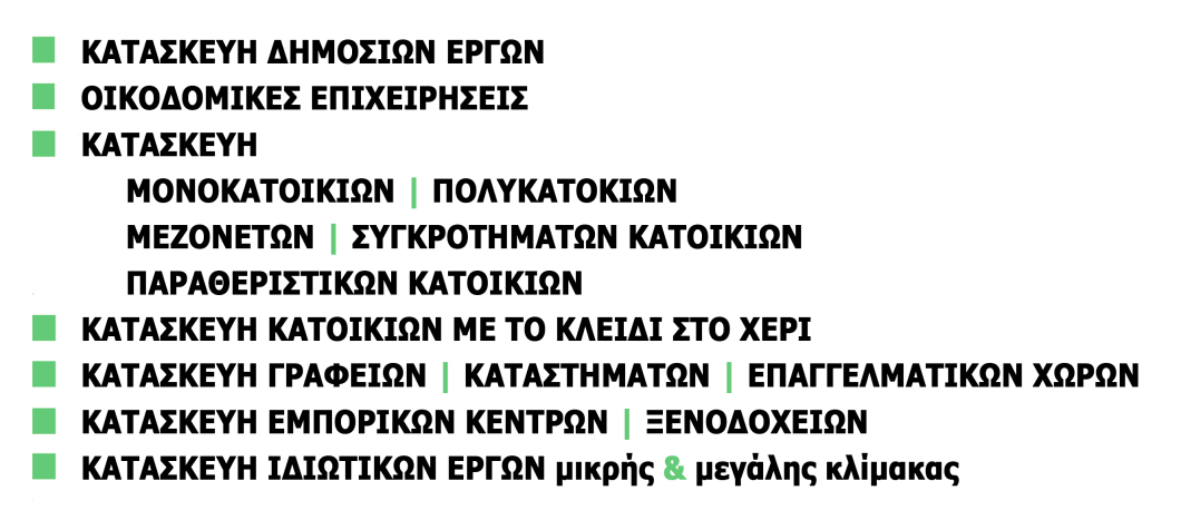 Οι τομείς δραστηριοποίησης της εταιρείας μας είναι: